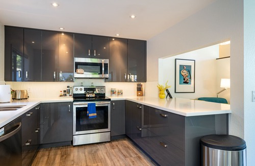• Newly remodeled kitchen with breakfast bar and dining area, access to the patio, sun deck and pool