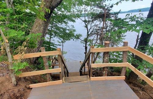 Access to the lake is directly behind the house and down stairs to the water. We also offer access to another beach private to our property a few hundred from the house which is accessible by vehicle. The eight mile long lake is fabulous for swimming, boating, fishing and all water activities.