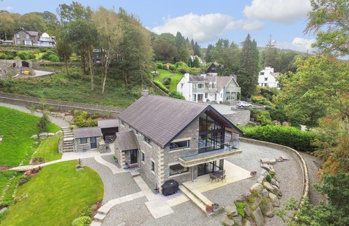 Louper Weir is an exceptional property, situated on the shores of Lake Windermere, near Bowness-on-Windermere in Cumbria. Hosting four bedrooms: all double rooms, two with en-suite shower rooms and two with en-suite bathrooms complete with free-standing baths and separate showers, this property can sleep up to eight people. Completing the interior on the ground-floor is a kitchen/diner with hand-made bespoke counter tops, a sitting room with cinema-style TV and sound system, snug, and utility room. Outside there is a multi-level garden with lawn, patio and gravel areas including outdoor seating and outdoor Webber cooker, leading out to private jetty and shoreline. Louper Weir will blow you away with its state of the art design and technology, to give you the ultimate Lakes experience.