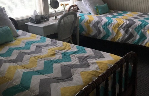 This is a large cottage that can handle a big group. It has 3 different living areas, including a recently renovated enclosed porch and a large kitchen with table plus an additional table just outside kitchen. Together they can seat 10 comfortably for meals. There are two completely separate, large family rooms, each with cable television. A sheltered back yard with pergola. Front family room has a sleeper sofa.