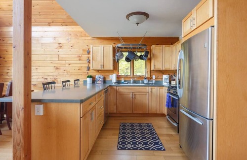 Right on the lake and a mile away from the mountain. Come stay in this fun, big, but still cozy chalet for friends and family. Direct lake access makes for hours of fun for all and central AC will keep you comfortable throughout your stay.