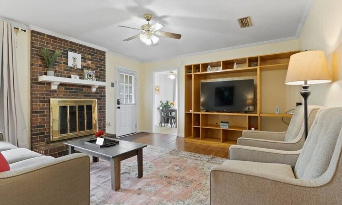 Looking for a cozy retreat? Stay in this charming 5-bedroom, 2-bathroom home that accommodates up to 14 guests. Conveniently located near the best of Montgomery, it features a living room with a comfy sofa bed for extra sleeping space. The fully equipped kitchen is perfect for meal prep, and you’ll enjoy free Wi-Fi and a Smart TV for entertainment. The spacious backyard is ideal for relaxing with loved ones. Pets are welcome for an additional fee. We provide both professional and real-time images from our cleaning team to ensure you know what to expect. We can’t wait to host you!