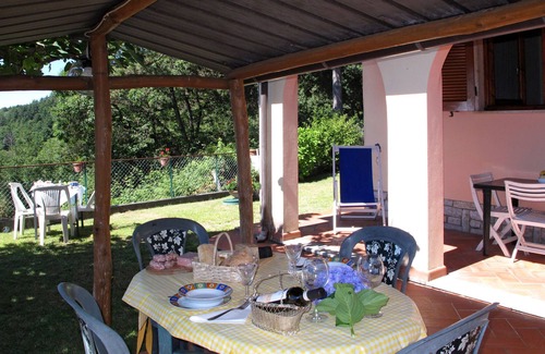 Pasquilio di Montignos 7 km from Cerreto di Montignoso: Semi-detached house "Le Ortensie", 824 m a.s.l surrounded by trees. 7 km from the centre of Cerreto di Montignoso, 600 m from the centre of Pasquilio di Montignoso, outside the resort, 48 km from the centre of Lucca, in an elevated position on a slope, 15 km from the sea, in the countryside, in the woods. Private: garden 150 m2 (fenced) with wildlife garden and flowers, meadow. Motor access (1 km mountain road). Parking on the premises, public parking on the road. Parking space or garage only for small to medium-sized cars. Dimension: width 250 cm. Grocery 6.7 km, supermarket 12 km, bus stop 7 km, railway station "Massa" 12 km, sandy beach "Cinquale" 15 km. Nearby attractions: Pietrasanta 21 km, Forte dei Marmi 22 km, Viareggio 45 km, Carrara Fantiscritti (cave di marmo) 23 km, Pisa 62 km, Riomaggiore (5 Terre) 64 km. Well-known lakes can easily be reached: Lago di Massaciuccoli 56 km, Torre del Lago 49 km. Hiking paths: sentieri cai 600 m. Please note: car recommended.
