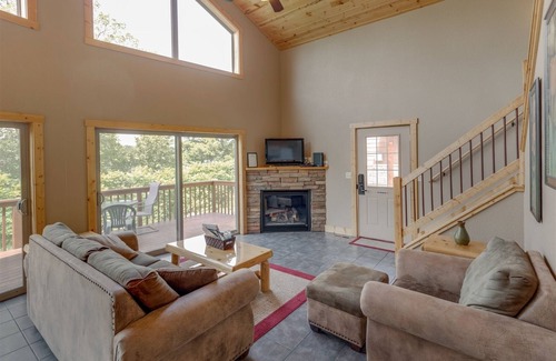 Beautiful cabin in a peaceful setting, just a few miles from downtown Walker. This cabin has two queen beds in the upper loft with an attached full bathroom. There is also a bedroom with a queen bed and a full bathroom on the main level. The cabin features a full kitchen, living area with gas fireplace, dining area,washer/dryer, and private deck with a propane grill all on the main level.