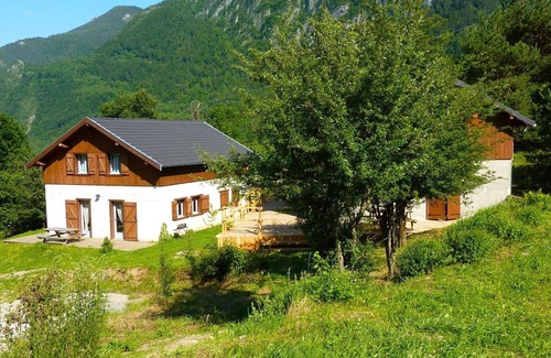 Mountain gite (altitude 750 m) - We welcome you in a warm interior space entirely covered in timber. Downstairs you can find WC, a bathroom, a kitchen area with vitro ceramic hobs, a fridge / freezer, a dishwasher, a washing machine, a toaster, a coffee maker, a raclette set etc. In the large living room area, enjoy the TV and the DVD player. Upstairs, there are two bedrooms: the first one contains a bed of 140 cm and the second one comprises 2 single beds of 90 cm. Sheets and bath towels are provided upon request without additional fees. Do not hesitate to ask for a baby cot or a high chair...