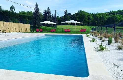 No, this Sainte-Colombe-de-Villeneuve cottage does not have a swimming pool. Check the Facility Overview section for details about the pool and other available facilities.