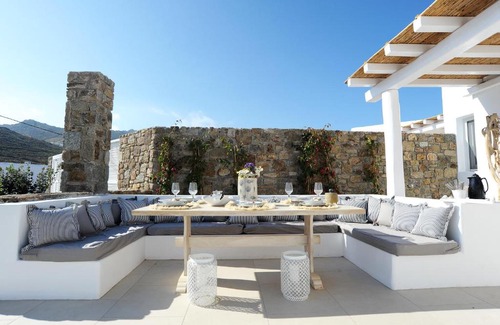 This 6 Bedrooms House is suitable for tourists and travelers. It has several amenities that would guarantee your comfort. These amenities include: View, Balcony/Terrace, Guest Services, and several others. This is a 4 star rated property and has over 11 reviews with the average score of 9.6 . Coming to Mykonos and needing a place to stay? Be it for work or for leisure, consider staying at this House for your next visit, you will surely love it.