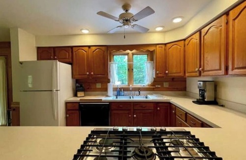 Log Cabin w/ Full Garage, FirePit, BBQ, cozy gas heat Stove | Cabin in Pocono Lake