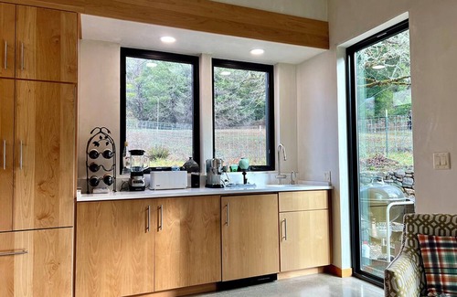 We designed and completed this home in 2024 after the Archie Creek Fire destroyed our legacy family home. Britt Creek runs directly in front of the house three ponds on 20 acres of land.