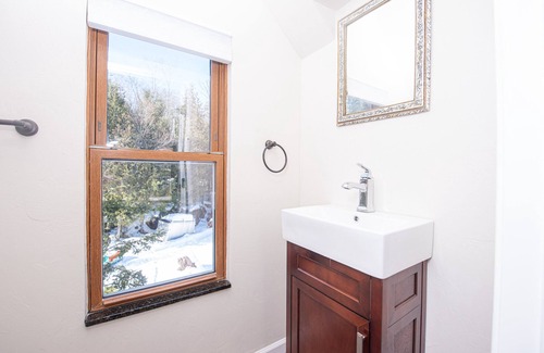 In the evening, locate the bedrooms - one found up a winding spiral staircase. If you're lucky enough to claim the 2nd bedroom, you'll enjoy falling asleep to the sound of the crackling wood-burning stove, along with long baths in the lavish garden tub.