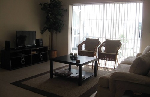 FULLY FURNISHED, BEDROOM: QUEEN SIZE BED, PLASMA TV. WALK IN CLOSET - LIVING ROOM: PLASMA TV, STEREO AUDIO SYSTEM, DINING AREA (4 SEATS), LIVING ROOM (5 SEATS) - KITCHEN: ELECTRIC RANGE WITH OVEN, MICROWAVE, REFRIGERATOR, FREEZER, COFFE MAKER, ELECTRIC GRILL, TOASTER, VERY WELL EQUIPPED, PRIVATE PATIO WITH TABLE AND CHAIRS.