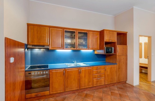 The kitchenette in your apartment comes fully equipped with an oven, 4 ceramic glass hob hotplates, a toaster, a kettle, a microwave, and an electric coffee machine. There is also a dining table in the kitchenette area. The apartment has a shower, a bidet, a separate toilet, and a hydro massage bathtub. Gas heating is available to keep you comfortable during your vacation. Wi-Fi internet access is provided free of charge. The property allows one small pet or dog for guests.