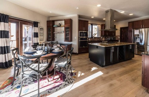 Luxurious 8000 sq. ft home with 9 Bedrooms, 7 Bathrooms and amazing resort views! Custom gourmet kitchen, 5 king bedrooms, 3 queen bedrooms, bunk area with 6 queen beds, sleeps 15+. Corner lot with lots of space for outdoor activities. Three car heated garage, two living areas, 2 kitchens and a huge game area with a pool table and bar. Everything you need for a perfect mountain getaway!