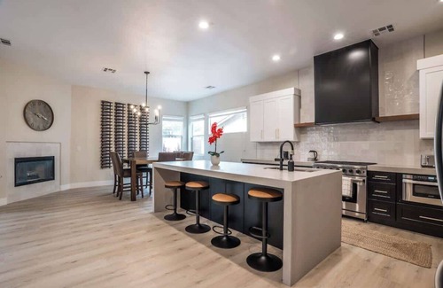 Unwind in plush king & queen beds, soak in the Spa or swim in the heated pool & gathering around the fire pit. Enjoy friendly competition with our pool table & table tennis. Relax inside with our 92" TV. Savor gourmet meals from the chef's kitchen, complete with Nespresso & Nutribullet. Smart appliances ensure convenience. 5-star linens and designer interiors promise unparalleled comfort. Heated pool, hammock, and board games complete your perfect stay.