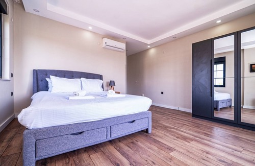 Are you ready for a fantastic vacation in Antalya? Our spacious and luxurious house features a wonderful garden, a playground for children, a balcony, a sauna, and a swimming pool. Additionally, our house is located 15 minutes away from Erasta Shopping Mall and half an hour away from Neapolis Ancient City. If you're looking for a short-term rental vacation home in Antalya, don't miss this opportunity and make your reservation now!