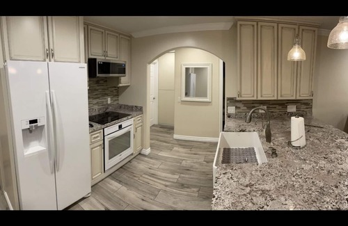 It has all appliances(Washer, Dryer, Refrigerator, microwave and oven, glass induction cook top, dishwasher with Bianco Antico Granite kitchen counter tops on Manchester white wood kitchen cabinets that have slow close/no slam doors with a beautiful matching backsplash and farmhouse sink with Instant Hot Faucet(200 degrees) for your morning or evening tea! Crown molding and base board with porcelain wood tiles. In addition to being fully equipped with all cooking and eating utensils, the condo also has a umbrella, beach chairs, towels, sand toys and boogie boards.