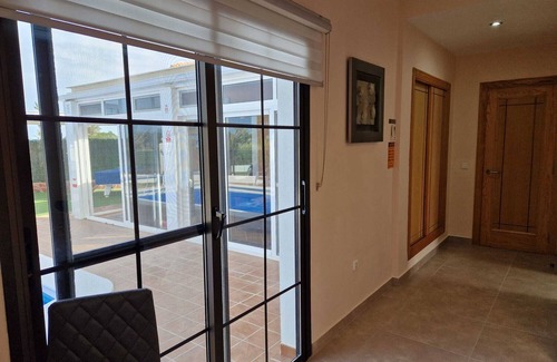 An extensive tiled area is available with an enclosed patio/sun room and alfresco dining for 6 people .There is an outside sofa, chairs and coffee table looking out to the pool.
