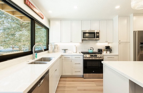 Kitchen/ Dining: Fully equipped kitchen offers new stainless steel appliances, including a six-burner Viking stove and double ovens. Enjoy the convenient bar seating, and the adjacent dining area complete with mountain-style bench seating — perfect spots for meals and snacks.