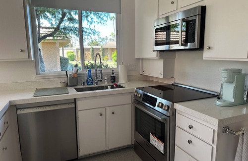 This spacious 2,500 sq. ft. open-concept home features a dining area, high ceilings, and abundant natural light. The ample bedrooms and living rooms are equipped with Smart TVs, new décor, and luxury linens. There are two king en-suite bathrooms with walk-in closets, and one queen en-suite bathroom with a walk-in closet—ideal for guests and couples sharing the space. Enjoy private patio access both at the front and rear of the property.