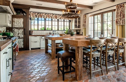 Our luxury home has an expansive and wide open living room, dining room and bar area with an open 2nd floor loft above the living room. Chef's will rejoice stepping into the home's wide open and fully stocked gourmet kitchen which also includes its oversized Sub-Zero refrigerator, several ice makers and a walk-in pantry. The four bedrooms are all en suite and have been designed with sheer and blackout curtains as well as beautiful reclaimed wood flooring. Each bathroom is unique with its own hand painted tile and all with walk in showers. Beds in the en suite bedrooms include 1 California King, 1 King, and 3 Queen. The loft includes 1 Full size lounge bed and 2 Full size couch beds.