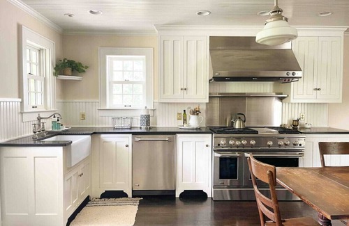 Boxwood House sleeps ten in a spacious primary bedroom (king), a cheery sunroom (queen sofa bed), two upstairs bedrooms (one queen and one room with two full beds) and a cozy library (queen sofa bed).
