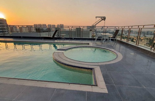 The wellness area at the apartment is comprised of an indoor pool and a hot tub. A terrace is available for guests at Beautiful Home near Dubai International Airport in Great Community of Dubai Silicone Oasis. To use.