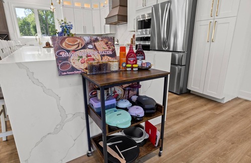 FULLY STOCKED gourmet, spacious kitchen that creates an ideal spot to cook a full course meal for your large group to enjoy. List for kitchen amenities is very long but just to name few: