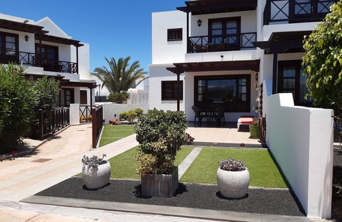 Ideally placed on a complex just 75 yards from the pedestrianised cliff top promenade, in a quiet residential area within comfortable walking distance to Playa Blanca's beaches, marina and nightlife, a 2 storey luxury end of terrace duplex town house completed early 2006. With a bedroom and bathroom on each level, the property is furnished and equipped to make you feel at home. Wi Fi throughout. Bedrooms have large fitted wardrobes (with lots of hangers), whilst the kitchen has everything you need including dishwasher, microwave, oven, grill, toaster, kettle etc. To the front, there is a part shaded terrace & balcony overlooking the large communal pool with views to the sea. There is an additional balcony & enclosed solana area that has a washing machine and drying space. Sunbeds and terrace furniture are provided as is a portable heater, large fan and a safe for peace of mind. An excellent supermarket/cafe/car hire/taxi rank and impressive hotels are all just a 5 minute stroll away. End of terrace large plot with open aspect to a car space to the rear, affords guests much more space and privacy than other properties on the estate.