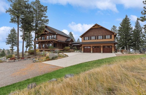 Discover Rocky Top, a unique Montana estate on 24 private acres, featuring over 7,000 sq. ft. of luxury living. This one-of-a-kind property presents unrivaled 360-degree panorama views of Flathead Lake and the Mission Mountains. Relax on the expansive outdoor deck, complete with integrated speakers and a jacuzzi. As the day turns into evening, find cozy furniture under the covered pavilion and around the propane firepit. Here, you can watch the sunset and fully embrace the natural beauty of MT.