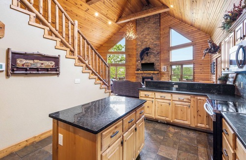 You'll find everything you need at Black Bear Lodge, a luxury 5 bedroom chalet on beautiful Table Rock Lake. Just 50 feet from the shoreline and dock, and steps from the main pool, this log chalet will be the talk of friends and family for years to come!