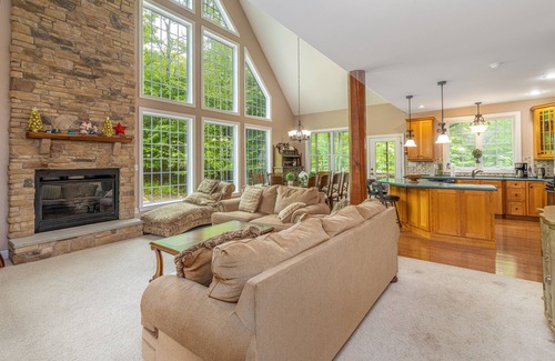 Step into the comfort of this luxurious three-level chalet with outstanding facilities in the very heart of the Pocono Mountains. It is nestled in the gorgeous natural ambiance, promising a fairy-tale retreat close to various Ski Resorts, Water Parks, Casino, Pocono Raceway, Premium Outlets, Big Pocono State Park, and state game lands. Ski, snowboard, swim, hunt, fish, hike, kayak, bike, The Community Big Bass Lake offers spacious and private accommodations for your next vacation, swimming pool, water slides, Tennis courts, Best for family reunion, group retreat party or scenic getaway.