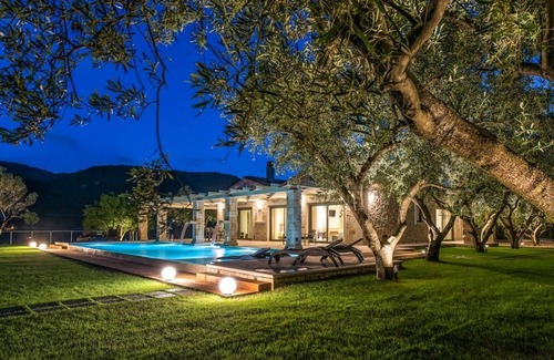 Artina Luxury Villa is built on a private property measuring 21 acres, on a hill overlooking the gulf of Keri, Marathonisi Island and the blue waters of the Ionian Sea. These breathtaking panoramic views will draw you in creating a unique paradise-like feel that will make your vacation heavenly. The beach is just a few meters through a private footpath.