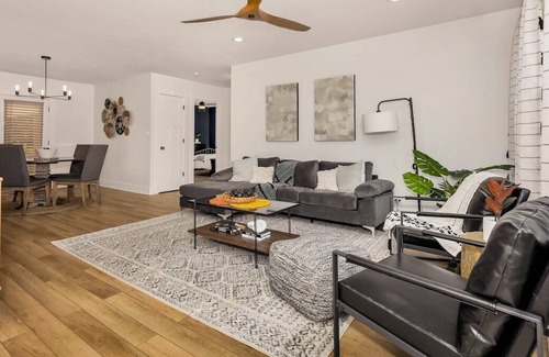 We at LVL Suites are Superhosts and take hospitality to a different level. We make your comfort our business. Fully-renovated (2023) spacious single level home with three bedrooms and two baths. Centrally located in the Medical District, close to Redstone Arsenal, Space and Rocket Center, Shopping, Groceries, Dining, Hiking, and More! Includes high speed Wifi, Fully stocked kitchen, Washer & Dryer, and Keyless smart lock entry. No smoking or parties. Pets are allowed on a case by case basis.