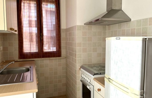 Description: apartment on the first and top floor of a recently renovated building, ideal for a comfortable and relaxing holiday. It is spread over two levels: entrance floor with living room, dining table, and single pull-out bed – separate kitchen, new and equipped with washing machine – bathroom with shower; upper floor with double bedroom and second bedroom with bunk bed.