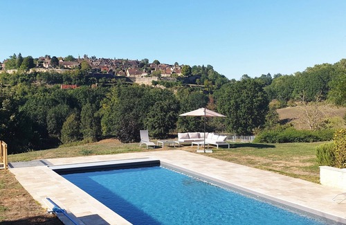* Set in front of the property, and enjoying the splendid view of Domme, the brand new swimming pool (available May 2019), measures 13m x 5m, and is equipped with sun loungers and parasols. It is secured by an electric cover and is heated from May to the end of September.