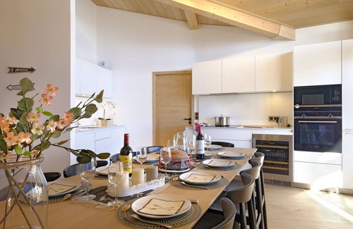 • Kitchen: oven, microwave, dishwasher, raclette machine, ceramic hobs, Nespresso coffee machine, kettle, toaster, large dining table, washing machine