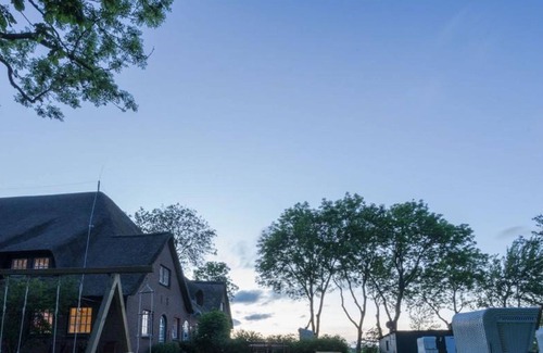 High quality apartments in Haubarg Windschuur on Eiderstedt in the world. The 1837 built as a typical Eiderstedter farmhouse building has been lovingly restored in recent years. Today there are 10 separate apartments under the thatched roof. In winter, the entire interior was renewed, so that the Haubarg windshower shines from Easter 2015 in new splendor. Surrounded by a spacious garden, the Haubarg is idyllic and quiet in the green marshes. The Eider barrage provides protection against winter storms 7 km away, the seaside resort of St. Peter-Ording can be reached in about 12km. The sea with a guarded swimming area in Vollerwiek only about 4km away. For family celebrations or other events, Haubarg Windschuur is also available to rent in its entirety if requested in good time. The spacious hall and the spacious garden with its old trees provide a noble North German ambience and comfortable accommodation for more than 40 people. The town of Garding with its shops, restaurants, cafe, weekly market and various events is also only about 2km away. The wide sandy beaches of St. Peter Ording is just 10 minutes away by car. The DLRG-guarded swimming area in Vollerwiek, with showers and a snack, it is only 2km. It is easy to reach by bike. in Welt there is a Kirchspielkrug with North Frisian specialties. TIP: From 01. 05.-31. 09. are offered there 4 times a week buffet days. The Matjes, suckling pig, skipper and Eiderstedter buffet are very popular and you must try it