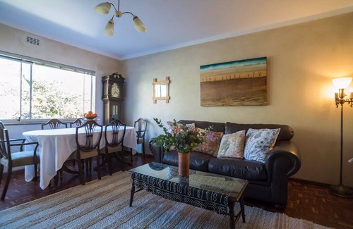 Light and spacious classic flat with modern touches, suitable for 2 couples sharing, or a couple with 2 children. The main bedroom and lounge boasts sweeping views of magnificent Table Mountain. Centrally located in Upper Gardens, in walking distance of the upmarket Gardens Shopping Center and MyCiti Bus. It includes secure off-street parking too. It is mountain facing, therefore it's tranquil with no traffic noise.