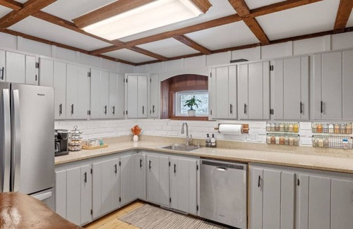 The full kitchen has everything you need to whip up tasty meals for large groups, including stainless steel appliances, cookware, dishes, and spacious countertops for prepping and serving your groups favorite dishes. I provide olive oil, balsamic, and a full suite of 24 organic spices, and a dishwasher makes cleaning up a breeze because who wants to spend time doing the dishes while on vacation?