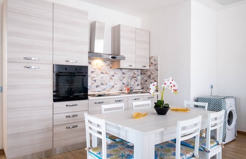 Imagine waking up to the sound of the waves and a spectacular view directly from your balcony: this luxurious seafront apartment, with its four small balconies – two of which overlook the sea – is the ideal place for an unforgettable holiday. You can accommodate up to seven people, thanks to a double bedroom, a spacious quadruple room with a double bed and a bunk bed, and a comfortable single sofa bed. Each room is equipped with air conditioning to always ensure maximum comfort, while the private kitchen with induction hob is ready to welcome your convivial moments. To make your experience even more pleasant, you will find fast internet to stay connected and three reserved private parking spaces, a real rarity in such an exclusive location. A perfect combination of modernity, practicality, and a magical seaside atmosphere.