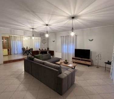 Featuring a garden, Margaw's Villa 600m from the beach offers accommodations in Perea. This property offers access to a balcony, free private parking, and free Wifi. Outdoor seating is also available at the villa. Offering a terrace and mountain views, the villa includes 3 bedrooms, a living room, satellite flat-screen TV, an equipped kitchen, and 2 bathrooms with a shower. Towels and bed linen are featured in the villa. There's also a seating area and a fireplace. Perea beach is a 9-minute walk from Margaw's Villa 600m from the beach, while Regency Casino Thessaloniki is 5 miles away. Thessaloniki Airport is 1.2 miles from the property.