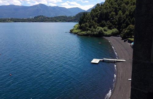 Spectacular apartment in private condominium, fully equipped up to 10 pp, located just 2 km from Pucón, surrounded by native forest, the building is on the first line on the shores of Lake Villarrica, with direct access to the beach, has a beautiful pool at lake shore, pier and buoy to moor boats. It has sports facilities, tennis courts and gym. Ideal to enjoy the natural and beauty of southern Chile