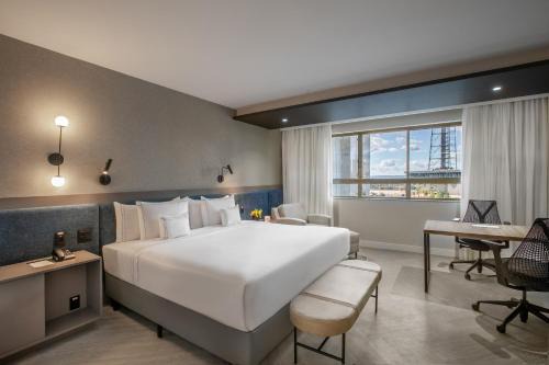 Offering a heated rooftop pool, gym and sauna, Meliá Brasil 21 is located between the Television Tower and Parque da Cidade, in Brasília. For extra care, the Meliá Brasil 21 hotel has a gym with more than 3281 ft², for your best comfort. 5-star hotel known for premium service and exclusive amenities. We have room categories that perfectly fit what you are looking for, all have air conditioning, TV with streaming, work desk and mini-bar. Those who choose to book THE LEVEL room category at the Meliá Brasil 21 Hotel will enjoy a package that includes access to the Exclusive Lounge located on the 2nd floor. This lounge offers special amenities such as private check-in and check-out service, concierge assistance, availability of snacks throughout the day and a daily Happy Hour from 6:30 pm to 9:30 pm, among other benefits. The Norton Restaurant, located on the 2nd floor, specializes in meat and fish, with a wide selection of wines. We have the best location for those coming for work or pleasure, we are 8.1 mi from Brasília International Airport, 2.4 mi from the National Congress, 1969 ft from Pátio Brasil 21 Shopping, 1804 ft from Venâncio Shopping and 1312 ft from Parque da Cidade.