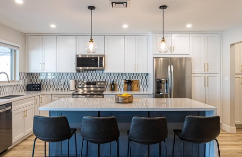 Introducing our breath-taking 4-bedroom, 2-bathroom haven in South Mesa. Newly rejuvenated and impeccably styled to provide tranquility and comfort for up to 11 cherished guests. Featuring a high-end, fully equipped kitchen adorned with elegant quartz countertops, your culinary needs are well catered for.