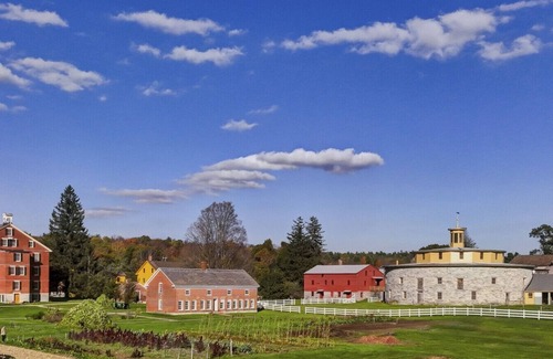 Welcome to Friendly Hills, a one-of-a-kind Mid-Century home nestled on 6 private acres. Built in the 1950s by GE engineer Willard F.M. Gray, this passive solar retreat offers panoramic views, triple-pane windows, and ceramic tile floors that retain heat year-round. Enjoy direct access to private hiking trails, peaceful ponds, and nearby Hancock Shaker Village. Fast Wi-Fi, thoughtful design, and natural beauty make this perfect for families, couples, and nature lovers alike.