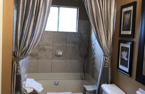 Bedrooms 1 & 2 are furnished and newly painted with smart tv’s and a queen size bed in each room. The master bedroom is furnished and newly painted with a smart tv, and a full size bed. Master bathroom has double sinks, a soaking garden tub with a rainfall shower, walk-in closet, bath towels, and extra bed linen.