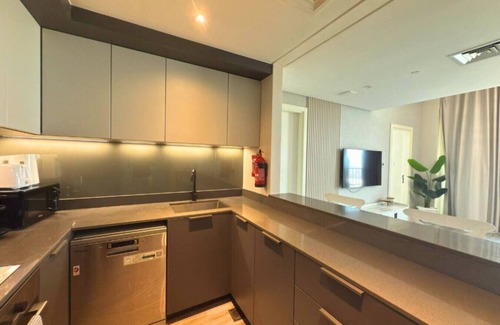 Welcome to our sophisticated 1-bedroom apartment at Mesk 1, where stylish design meets practicality. The open-plan living space is elegantly furnished with modern decor, featuring a comfortable sofa and a flat-screen smart TV for your entertainment. The bedroom offers a serene escape with a plush bed, soft cotton linens, and ample storage. The kitchen is perfect for cooking enthusiasts, equipped with sleek appliances, contemporary countertops, and all the essentials for preparing delicious meals. Relax on your private balcony while taking in the breathtaking park views. The apartment includes high-speed Wi-Fi, air conditioning, and a range of thoughtful amenities to enhance your stay. Situated in the vibrant Midtown area, you'll enjoy easy access to scenic parks, a variety of dining options, and exciting entertainment.