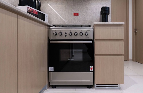 Relax in a cozy, thoughtfully designed living room with a smart TV and high-speed Wi-Fi—perfect for business trips or staycations. The open-plan kitchen is fully equipped with quality appliances, cookware, and essentials to make you feel right at home.