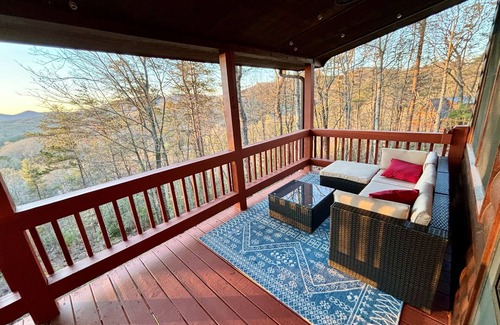 Wake up to stunning long range views of the North Georgia mountains from this mountain ridge cabin. Located 3.5 miles from downtown and along Aska Road, you'll be close to all the action of Blue Ridge. This modern farmhouse cabin has plenty of room for everyone to relax and refresh for the next days' adventures. Outdoor living on two decks with seating and dining areas and a firepit for evening s'mores. Kids will love the arcade and indoor 'camping' space.