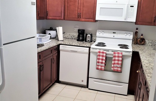 This impressive 2 bedroom, 2 bathroom condo provides a fully stocked kitchen with Microwave, Blender, Coffee Maker and more. Dining room seating for 4 and eat-in bar seating for 2. Two TV's provided with Xfinity cable and streaming services available using your personal login.